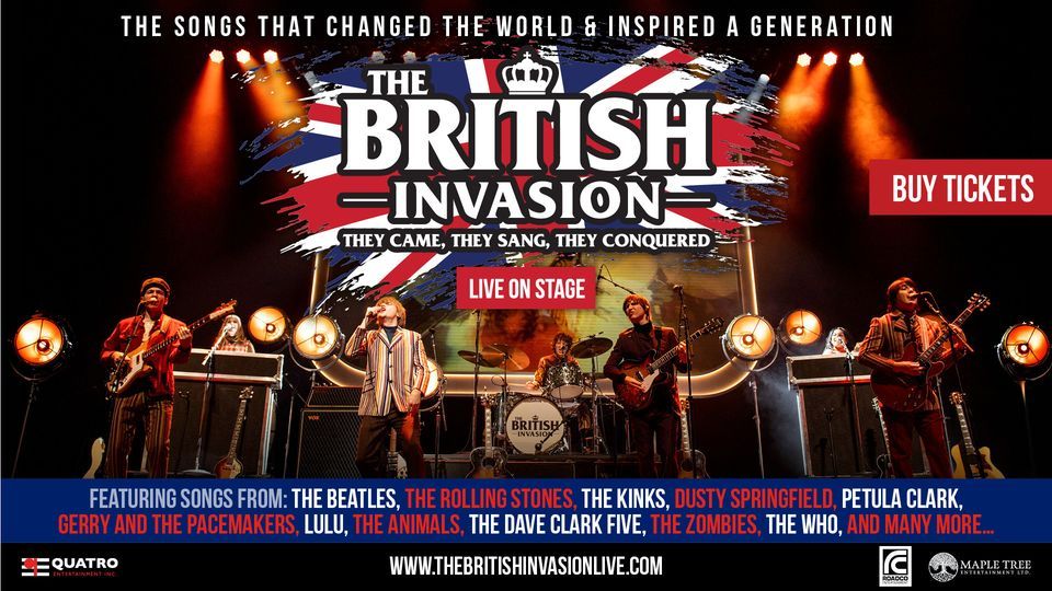The British Invasion - Live on Stage is an immersive multi-media show that will place you at the front and centre of pop culture history. Huge projection period photos and original film footage recreate the era’s excitement, fashion, and headlines; all the while a full live band performs all of the hits of the Swingin’ 60’s; the iconic British pop sound that swept across America and the world.The Story: The British Invasion was a cultural phenomenon that completely re-directed the course of history. In January, 1964, America was still mourning the death of President John F. Kennedy and everything seemed to be in a vacuum; music was dominated by manufactured teen idols; Elvis was in Hollywood; everything was squeaky clean and dull. On Sunday night, Feb 9, 1964, close to 50% of US television viewers tuned in to the #1 variety show of the era, The Ed Sullivan Show, to see the American debut of a British group called The Beatles.
