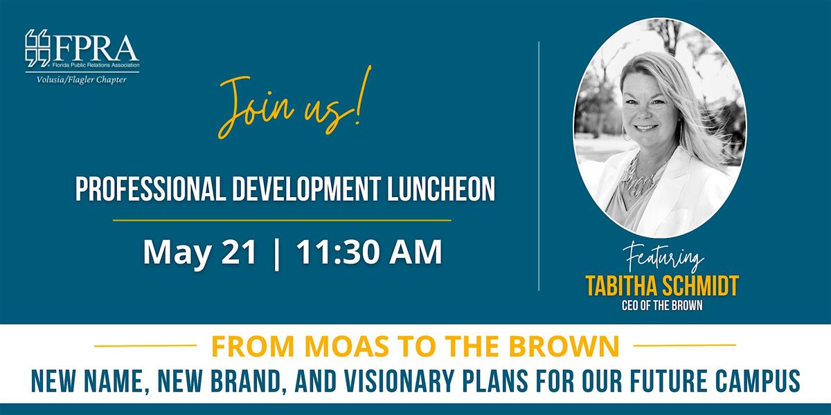 Tabitha Schmidt, CEO of The Brown, will share the museum’s ongoing rebrand journey from the Museum of Arts and Sciences (MOAS) to The Cici & Hyatt Brown Museum of Art, Science & History (The Brown) at the FPRA Volusia/Flagler Chapter’s professional development program on Thursday, May 21.