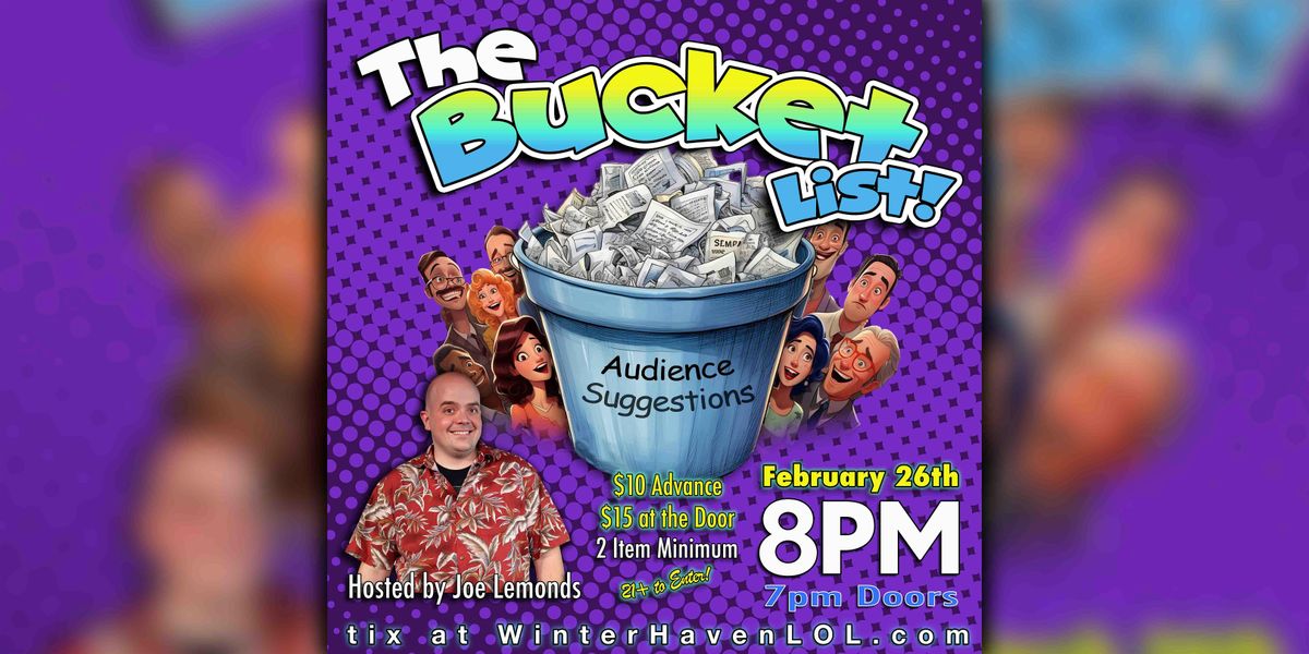 Welcome to The Bucket List! — a fast-paced, improvised comedy show where you help shape the laughs.