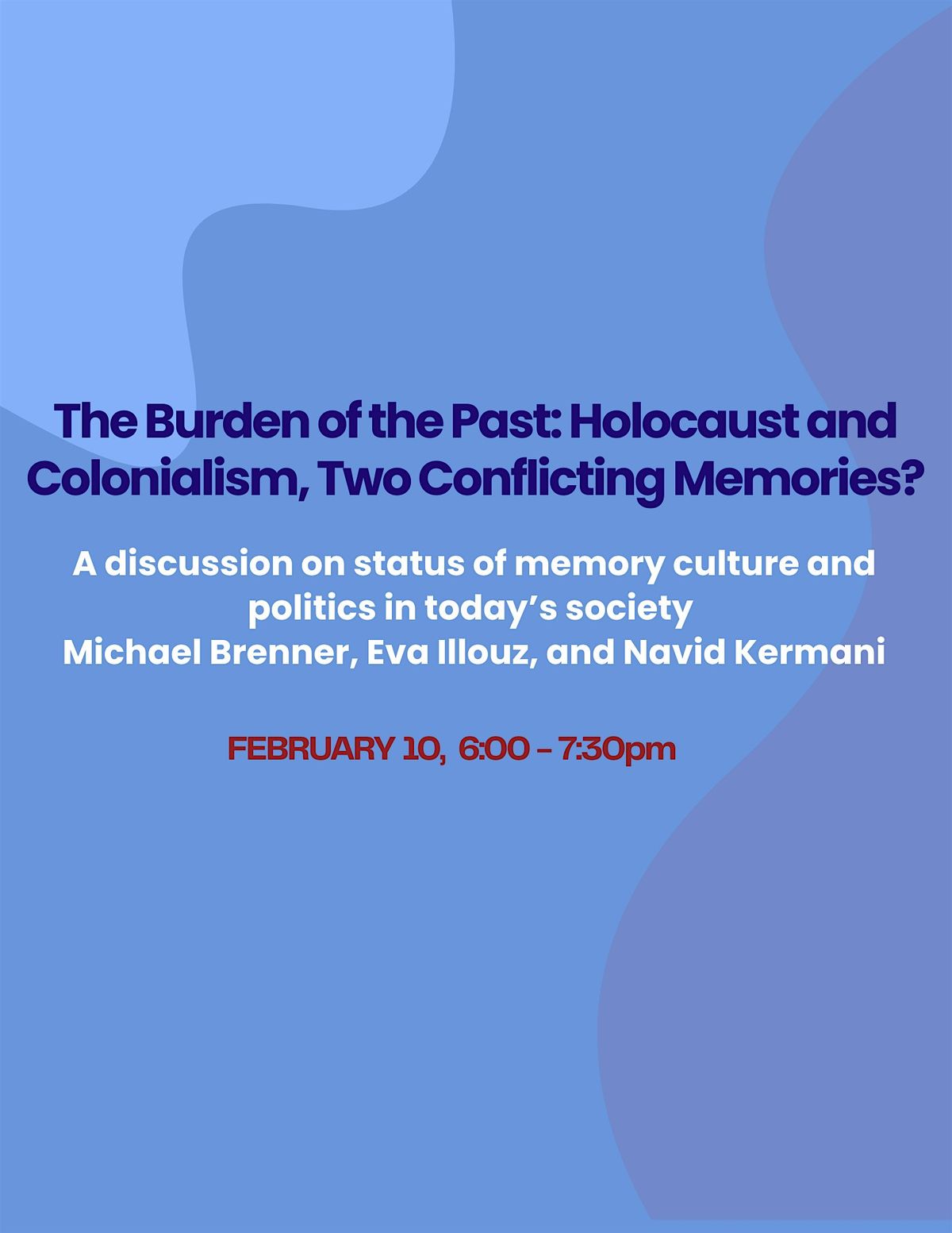 American University’s Abensohn Chair in Israel Studies, Michael Brenner, will discuss the status of memory culture and politics in today’s society with two of the most acclaimed European public intellectuals, French-Israeli sociologist Eva Illouz and Iranian-German scholar of Islam and novelist Navid Kermani. The conversation will focus on the significance of public voices in our polarized world, on the changing concept of “the West”, on religion as a bridge or as a radicalizing element in conflicts, on the limits of freedom of expression, and on the current developments in Israel and Iran.