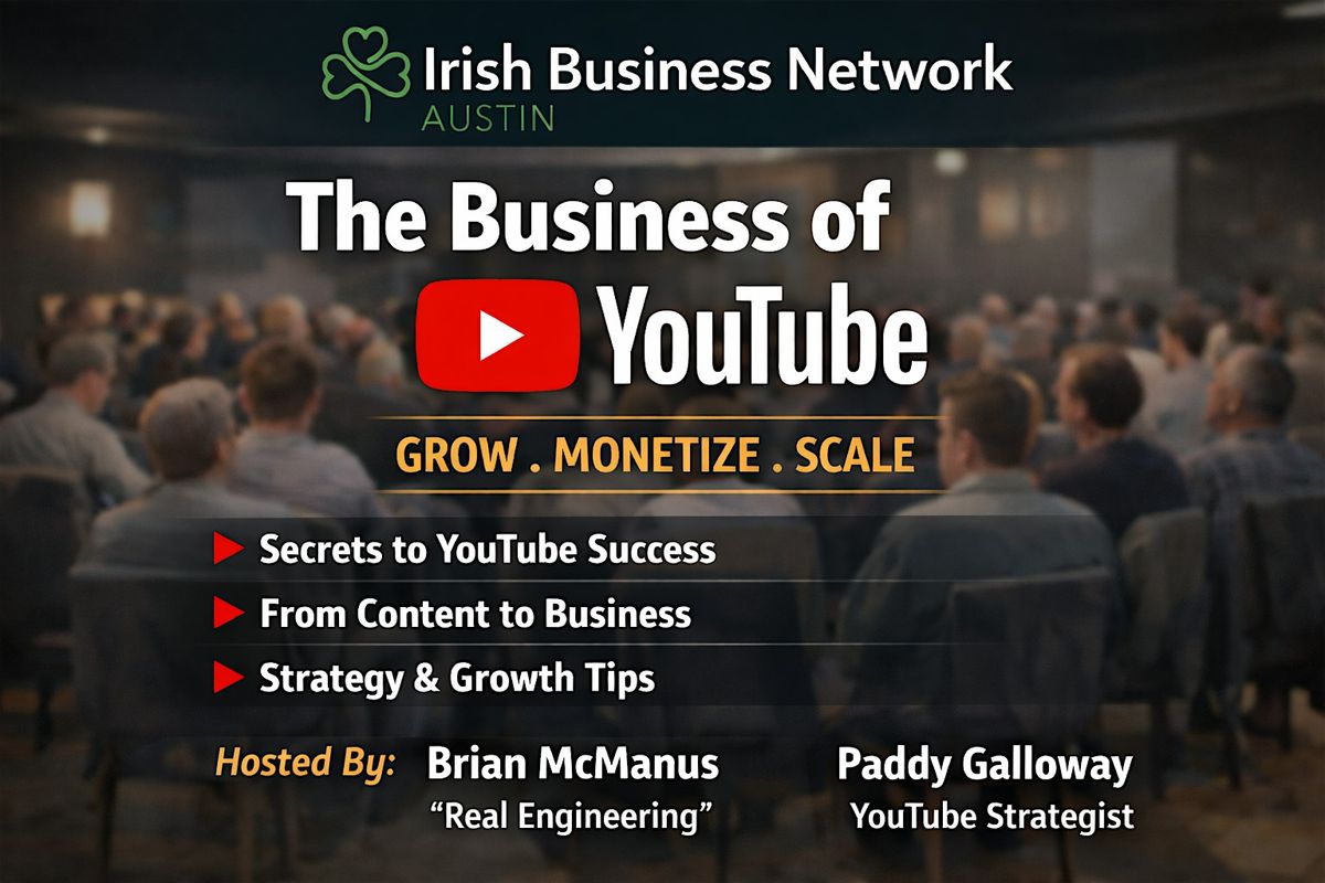 The Irish Business Network Austin is excited to host a special interactive evening exploring the business of YouTube — how channels are built, scaled, monetized, and turned into real, sustainable businesses.