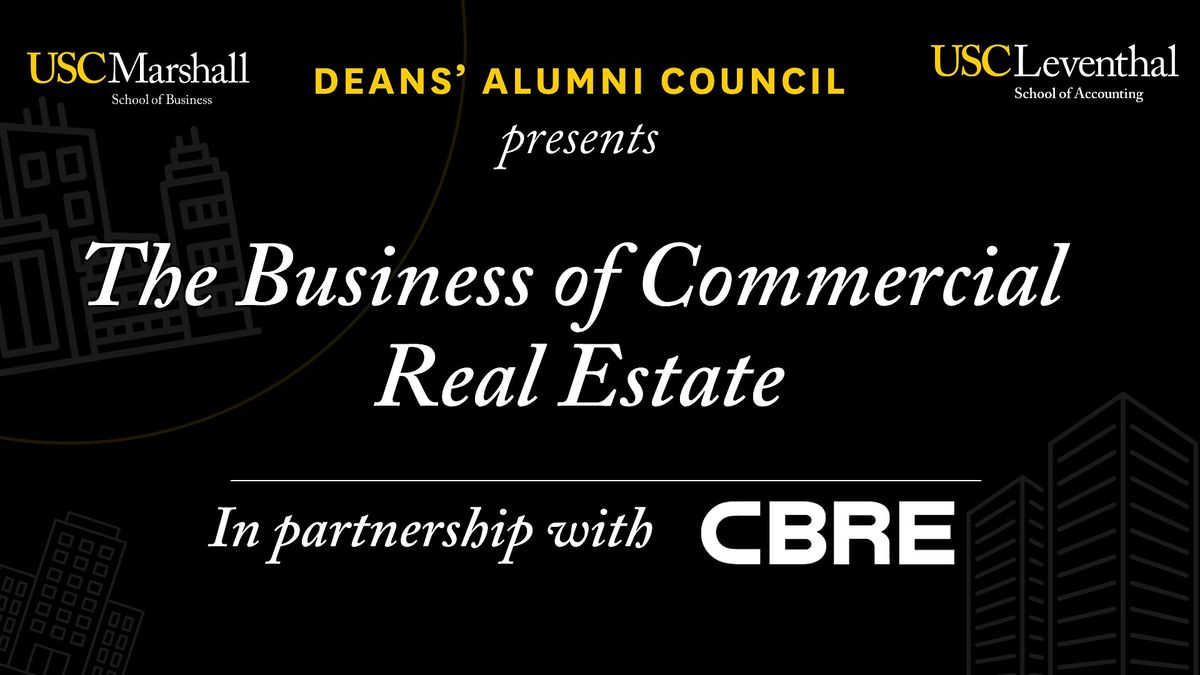 Join the USC Marshall and Leventhal Deans’ Alumni Council at CBRE’s Downtown Los Angeles office for an inside look at today’s commercial real estate landscape. The evening will begin with a brief tour of CBRE’s workspace, followed by a panel discussion exploring key trends, investment strategies, and emerging technologies shaping the industry. A short Q&A and networking reception will follow.