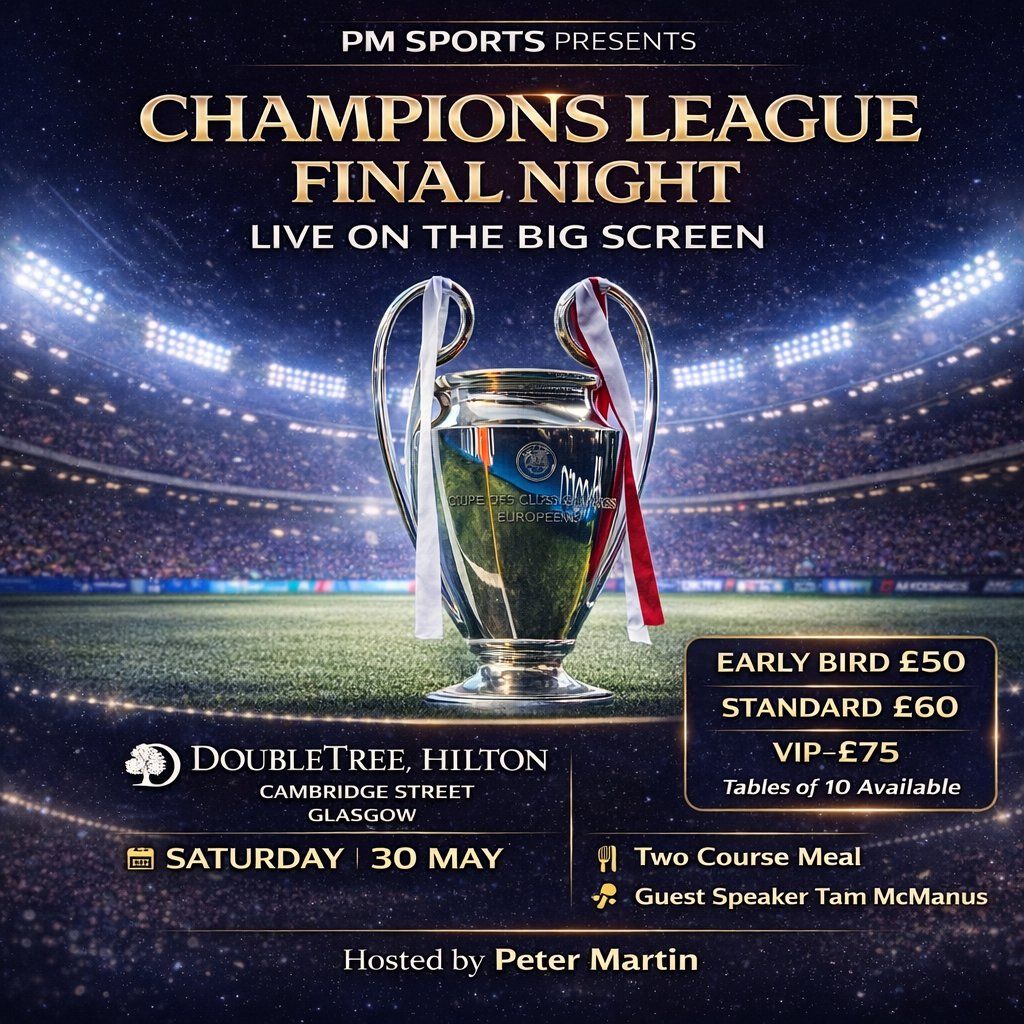 Watch the Champions League live on the big screens with fabulous prizes to be won and guest speaker Tam McManus. Hosted by Peter Martin.Music Genres :