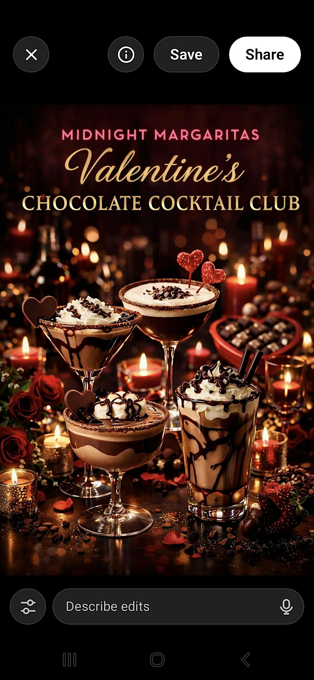 Get ready for a night full of delicious chocolate and creative cocktails! Join us in person for an unforgettable Valentines experience where you can sip, savor, and celebrate love (or just great drinks) with friends. Perfect for chocolate lovers and cocktail enthusiasts alike. Let’s make this Valentines one to remember!
