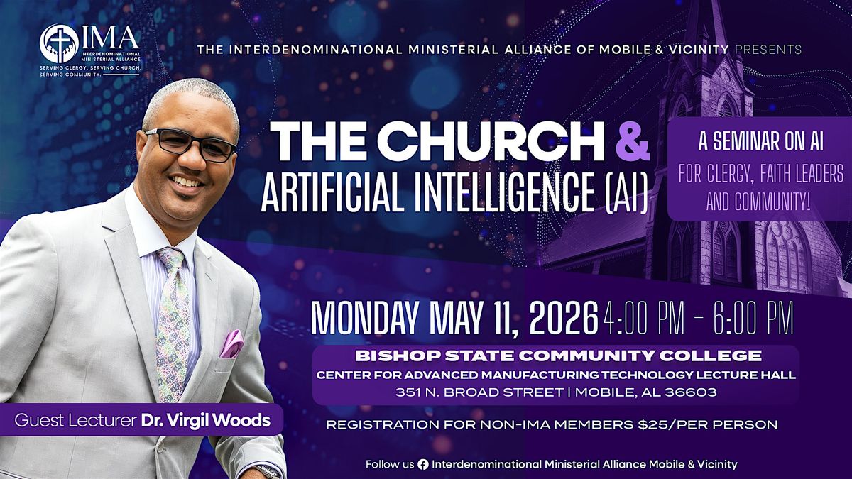 Join us on May 11, 2026 at 4:00 PM (CT) at Bishop State Community College – Center for Advanced Manufacturing Technology Lecture Hall for a thought-provoking seminar on the intersection of faith and technology.