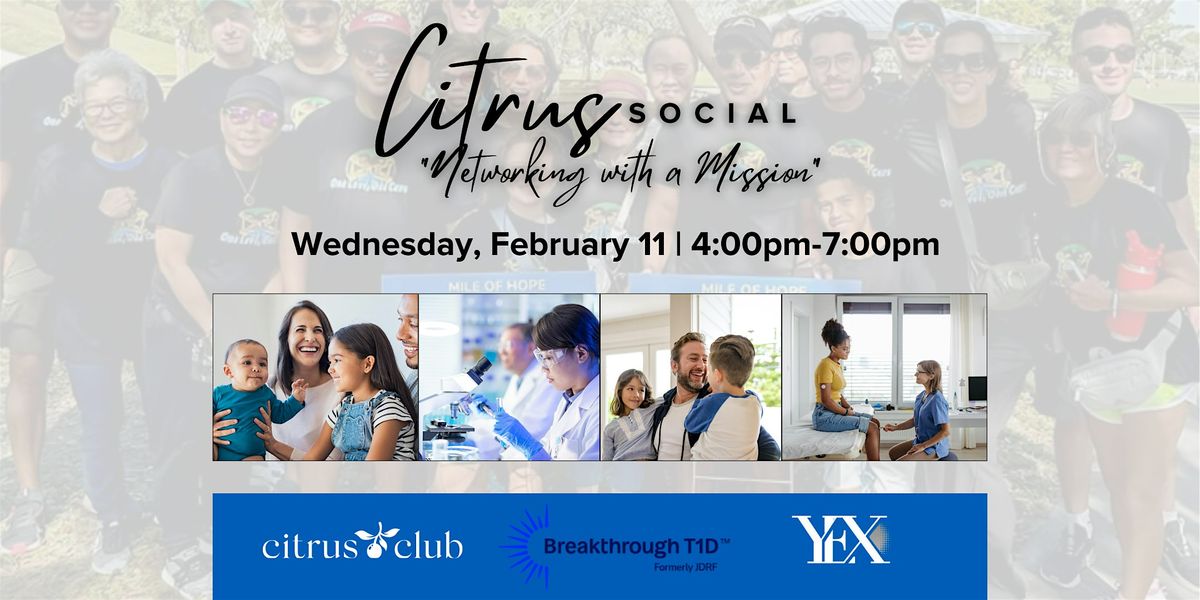 This month for our "Citrus Social" Series, The Citrus Club's Young Executive Committee is partnering with Breakthrough T1D (formerly JDRF) to bring you an opportunity to connect and collaborate at a higher level with business professionals and community leaders in Central Florida.
