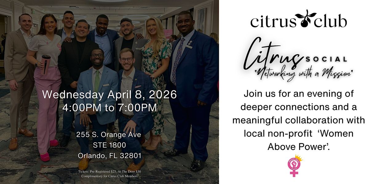 This month for our "Citrus Social" Series, The Citrus Club's Young Executive Committee is partnering with Women Above Power to bring you an opportunity to connect and collaborate at a higher level with business professionals and community leaders in Central Florida.