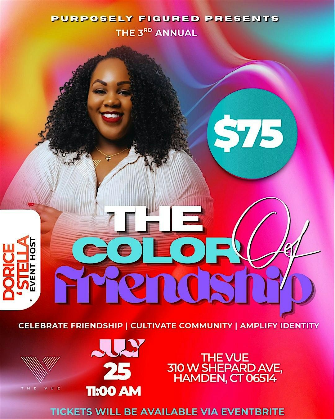 Join us at The Vue in Hamden, CT for a vibrant and elevated afternoon designed to celebrate friendship, cultivate meaningful connections, and amplify identity. Whether you’re coming with a large group of friends, a faithful few or even solo, expect an atmosphere filled with energy, celebration, elegance, and intention.