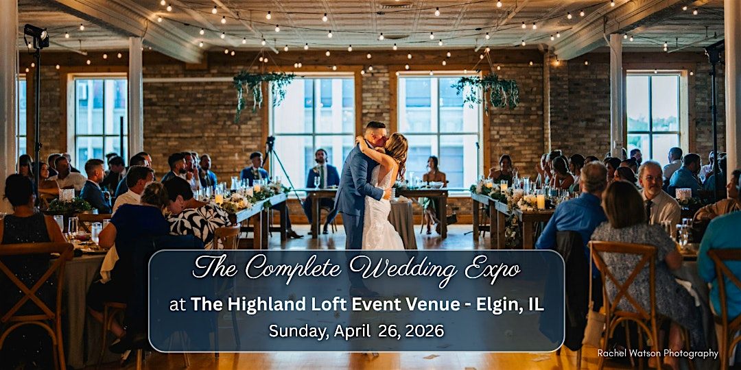 The Complete Wedding Expo, Chicagoland’s best FREE bridal expo is at The Highland Loft Event Venue Sunday, April 26— a premier event venue in historic downtown Elgin, Illinois.