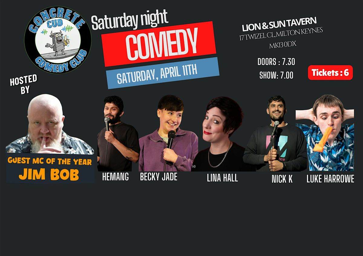Get set for a high‑energy, laugh‑packed night as The Concrete Cud returns on April 11th with a killer lineup — featuring the crowd’s favourite MC Jim Bob and the cheeky comedic firecracker Luke Harrowe, both back to bring maximum chaos and charm to the stage.