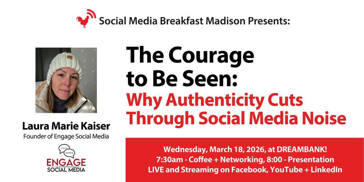 If you aren’t able to join us in person, our sponsor, Live Well Video will be LIVE STREAMING this event on our Social Media Breakfast Madison Facebook page, YouTube channel and on LinkedIn beginning at 8:00am.