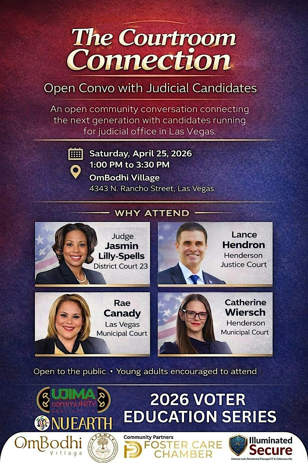 The Courtroom Connection: Open Convo with Judicial Candidates is a public community conversation designed to connect the next generation with candidates running for judicial office in Las Vegas.