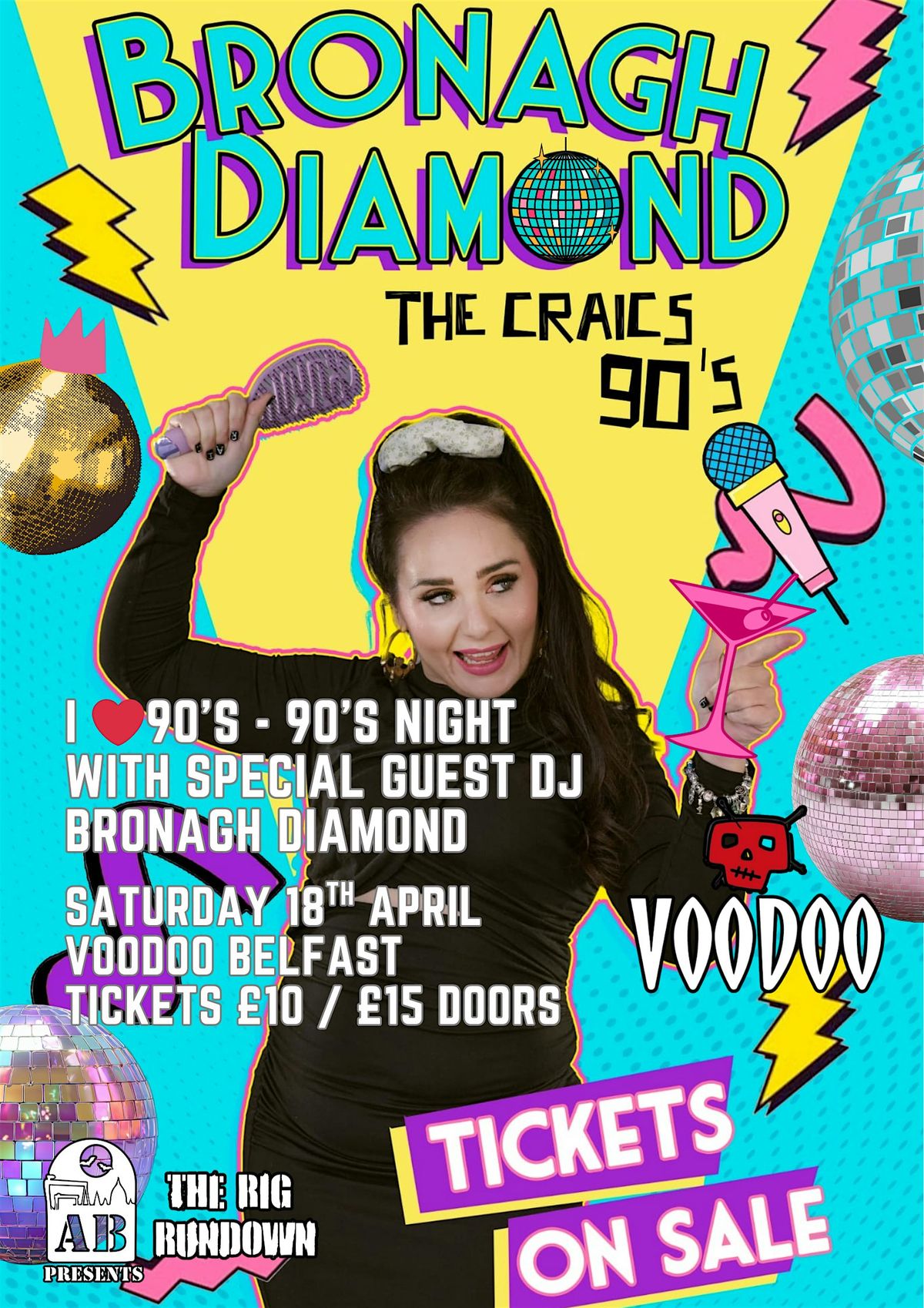 Fresh off her The Craics 90 stand-up tour, special guest DJ Bronagh Diamond is stepping behind the decks to bring you The Craics 90’s! A unforgettable night of 90’s rock & pop anthems.