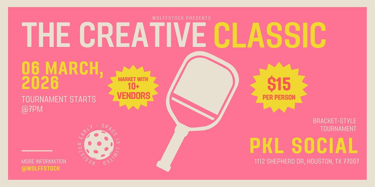 The Creative Classic is a high-energy pickleball tournament and market taking over PKL Social on Friday, March 6 from 7–11PM.
