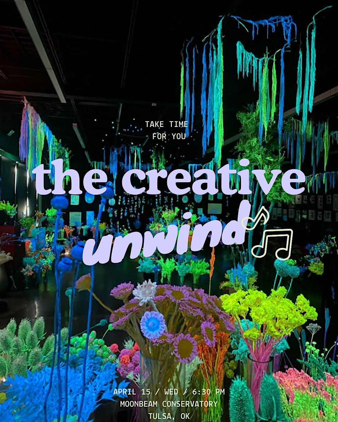 Craft, create, and unwind to live music surrounded by hundreds of glow in the dark flowers. This is a space for creatives to recharge.