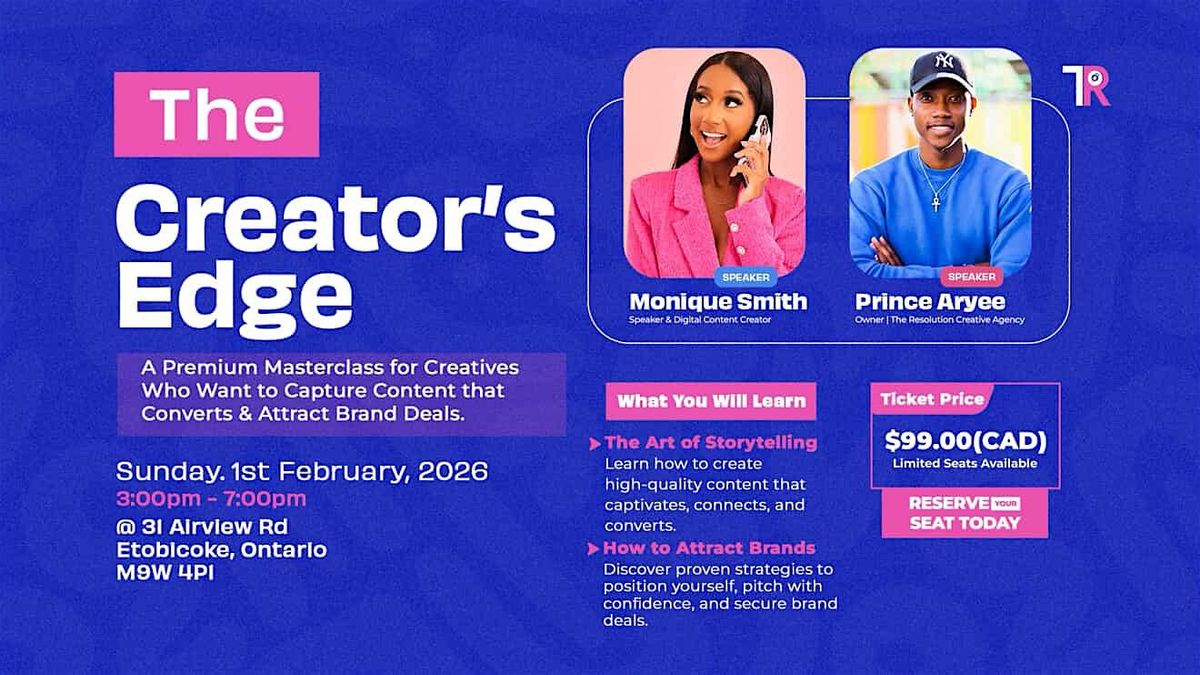 The Creator’s Edge Masterclass is a premium in-person learning experience designed for creators, influencers, entrepreneurs, and purpose-driven brands looking to sharpen their visual presence and elevate their digital storytelling.