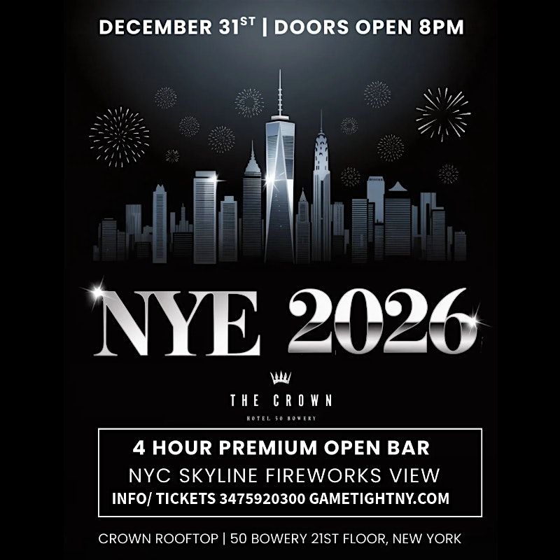 For more information/ tickets/ birthdays at New Year’s Eve 2026 at The Crown Rooftop NYC call/ text 3475920300 or log onto Gametightny.com