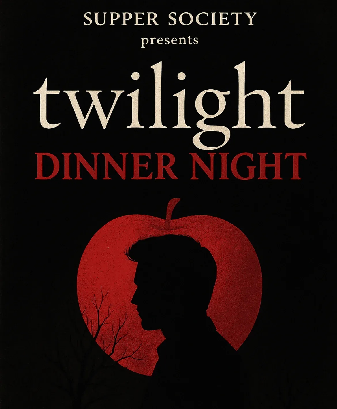 Supper Society invites you to step back into Forks, Washington for a Twilight Dinner Night on November 8th. Think stormy skies, small town diners, and family meals that always seem to come with a side of mystery. Guests are asked to bring a dish inspired by the foods from the very first Twilight film—whether that means a Cullen-worthy feast, Bella’s favorite comfort foods, or something that could easily show up at the Forks High cafeteria. During dinner we’ll watch Twilight together, reliving every dramatic glance and every awkward cafeteria scene. Come hungry, come curious, and come ready to decide once and for all: Team Edward or Team Jacob.