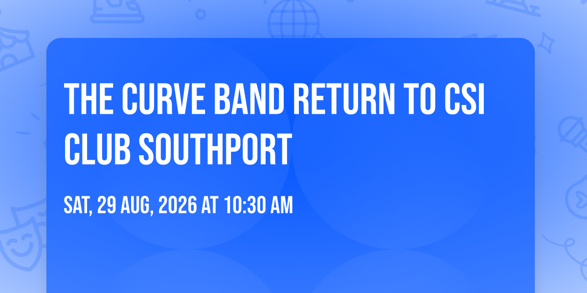 Get ready for an epic night of live music as The Curve Band at CSi Southport 2026 from 8.30pm ! Known for their high-energy shows and killer playlists, The Curve Band will be rocking the stage with hits from The Weeknd, AC/DC, Shania Twain, Green Day, Mr Big, Queen, Ugly Kid Joe, Fleetwood Mac and stacks more – there's something for everyone!Bring your crew, grab a drink, and hit the dancefloor for a night of non-stop fun, killer vibes, and unforgettable tunes.