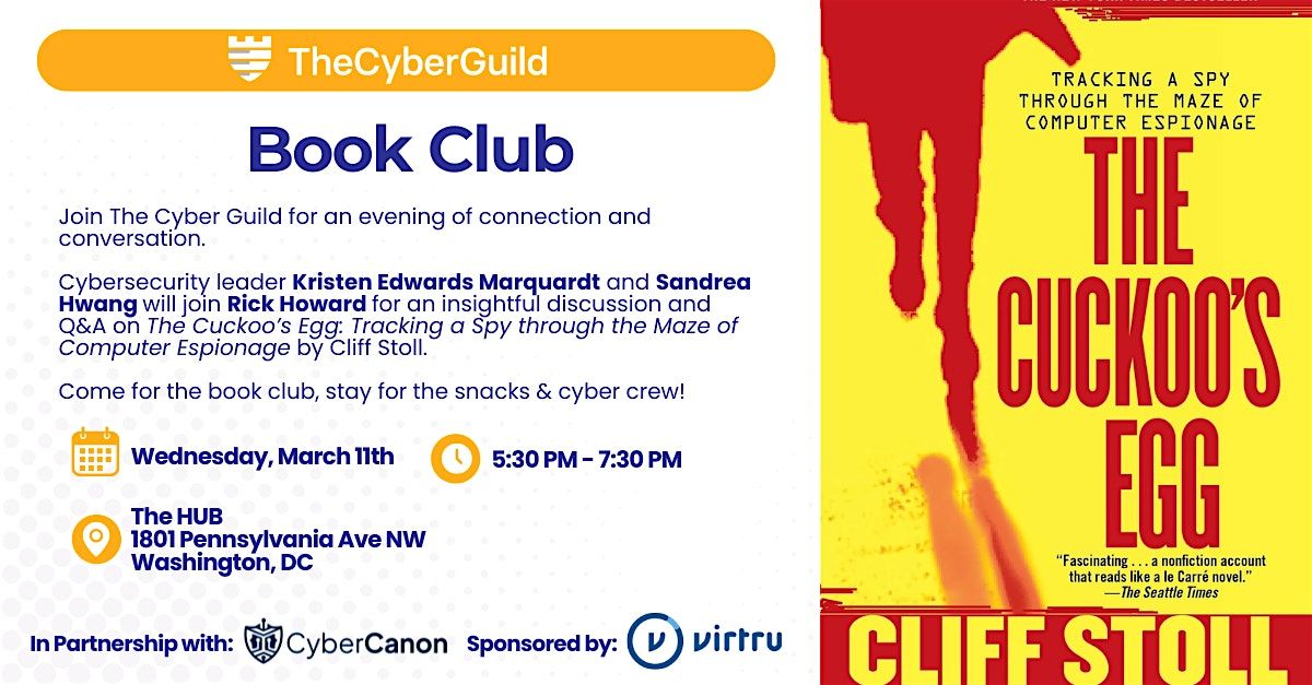 We’re excited to welcome cybersecurity leaders and alongside for an engaging discussion and live Q&A centered on The Cuckoo’s Egg by Cliff Stoll - the true story of tracking a spy through the early days of computer espionage.