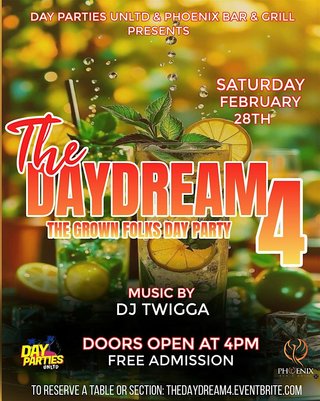The Next Grown Folks Day Party is Saturday, February 28th at Phoenix Bar & Grill. Presented by Day Parties Unltd