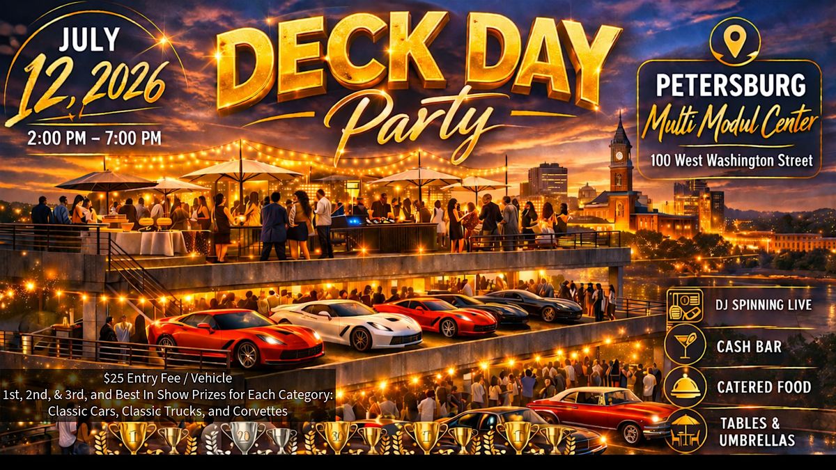 #DeckDayParty #PetersburgVA #RooftopVibes #CarShowLife #CorvetteLife #ClassicCars #DayParty #VirginiaEvents #SupportLocalVA #LuxuryVibes #SummerEvents #ThingsToDoInVA #VibeOut #LiveDJ #FoodAndFun
