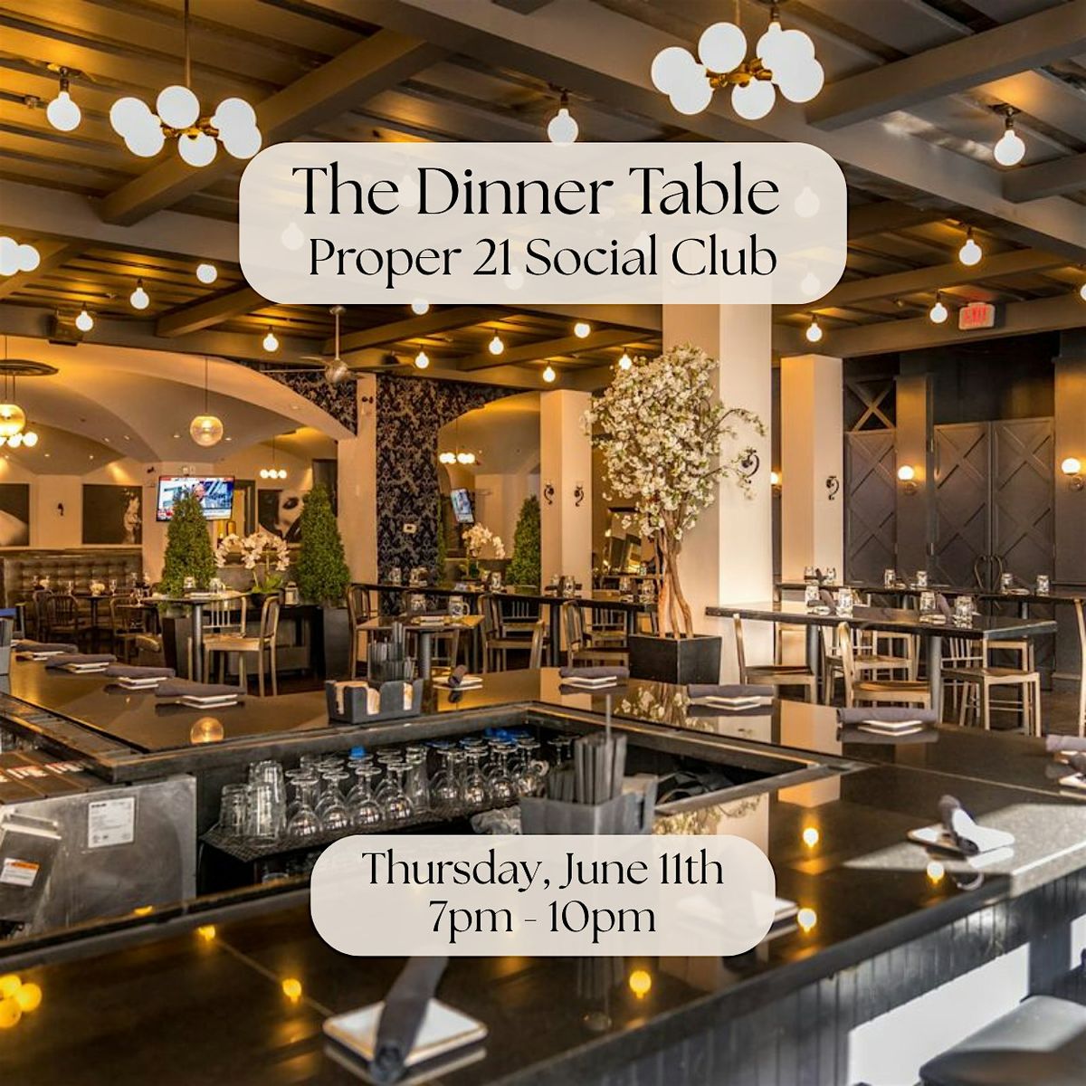 Event Overview: A 3-course New American dinner. A polished, buzzy downtown room. A table full of interesting people you haven't met yet + seat rotations that guarantee you'll meet them all.