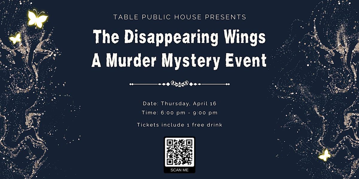 Join us at Table Public House for an evening of intrigue, laughter, and surprise. You’ll step into the fantastical kingdom of Miravel for The Disappearing Wings, a M**der mystery event where you become the story.
