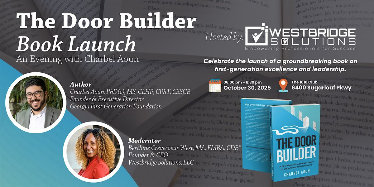 Join us for an inspiring evening at The 1818 Club as we celebrate the release of The Door Builder, a memoir-manifesto by Charbel M. Aoun, Founding Executive Director of the Georgia First Generation Foundation.