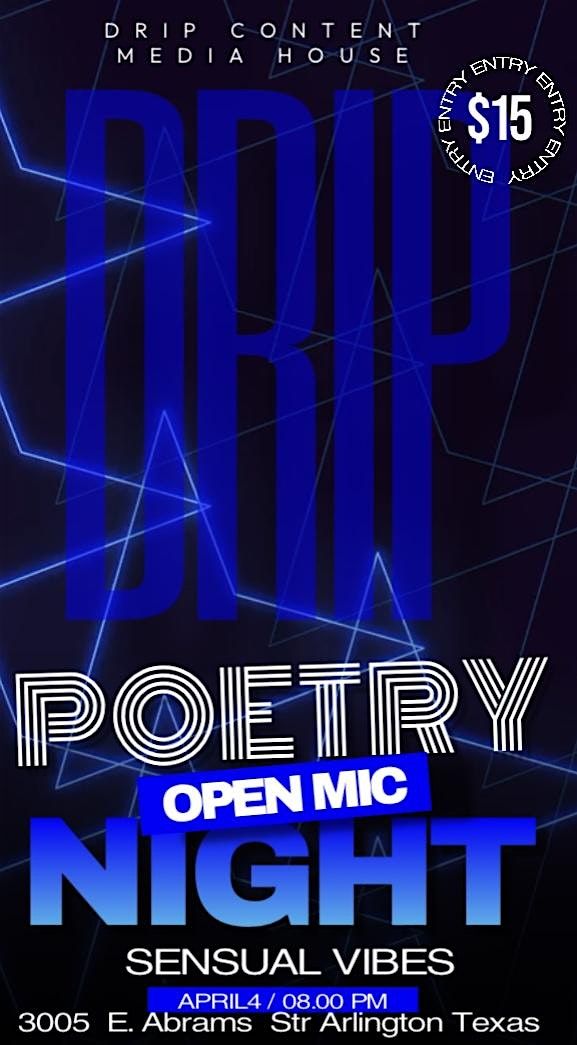 Get ready to vibe with The Drip, an intimate night where sensual spokenword meets soulful tunes. This in-person event is perfect for anyone looking to feel the rhythm, the words, and the mood all in one space. Expect raw emotions, smooth beats, and a cozy atmosphere that'll keep you hooked. Donβt miss out on an evening that speaks to your heart and soul!