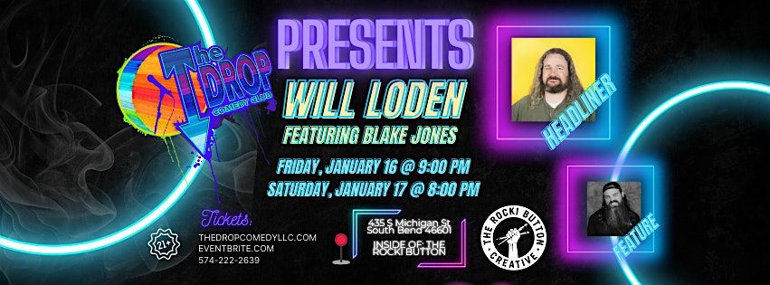 The Drop Comedy Club is pleased to welcome Nationally Touring Headliner, Will Loden festuring Blake Jones, January 16 & 17, 2026. There will be two shows.