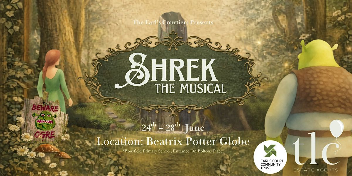 The Earls Courtiers present Shrek The Musical, a fun, high energy production packed with laughter, music and a cast of much loved characters. Whether you know the story well or are seeing it for the first time, it is a show designed to be enjoyed by all ages.