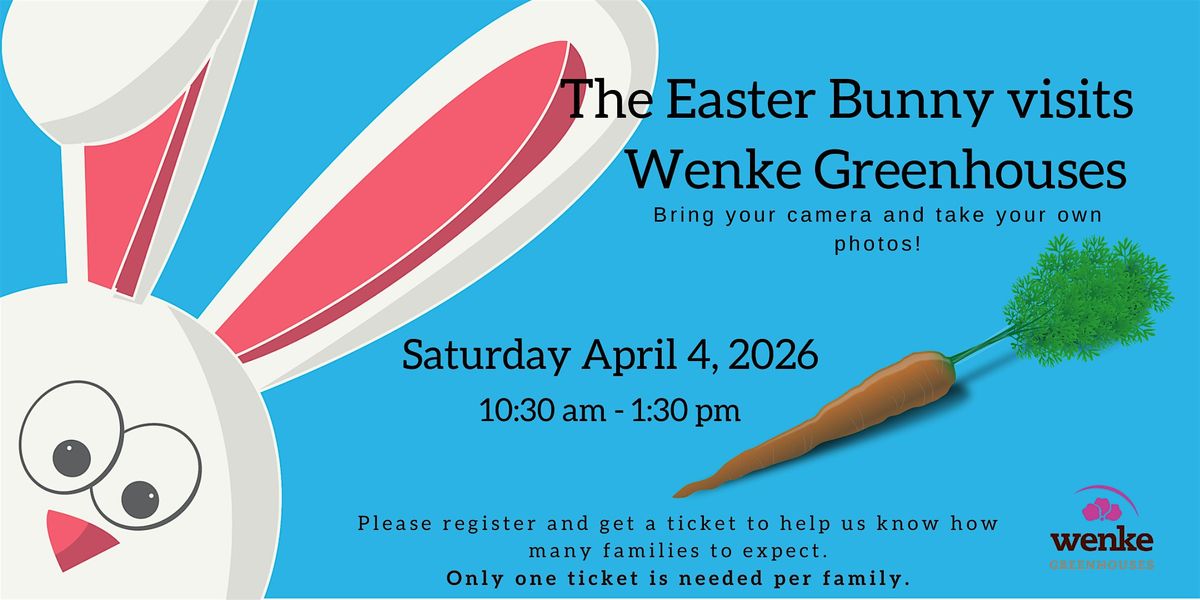 The Easter Bunny will be hopping in to visit with all the kids at Wenke Greenhouses on Saturday, April 4, 2026. Come by between 10:30am and 1:30 pm for a chance to meet, mingle and snap a photo or two with our white, fluffy friend. It’s the perfect set-up for a spring time photo with Mr. Peter Cottontail! Bring your camera! FREE