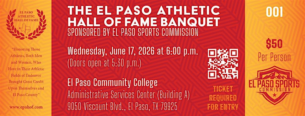 Join us in person for a night celebrating local sports legends! The El Paso Athletic Hall of Fame Banquet is the perfect chance to connect with fellow fans, honor outstanding athletes and supporters of athletics, and enjoy an unforgettable evening. This event promises great company and inspiring stories. Don’t miss out on celebrating El Paso’s athletic history in a relaxed, friendly atmosphere!