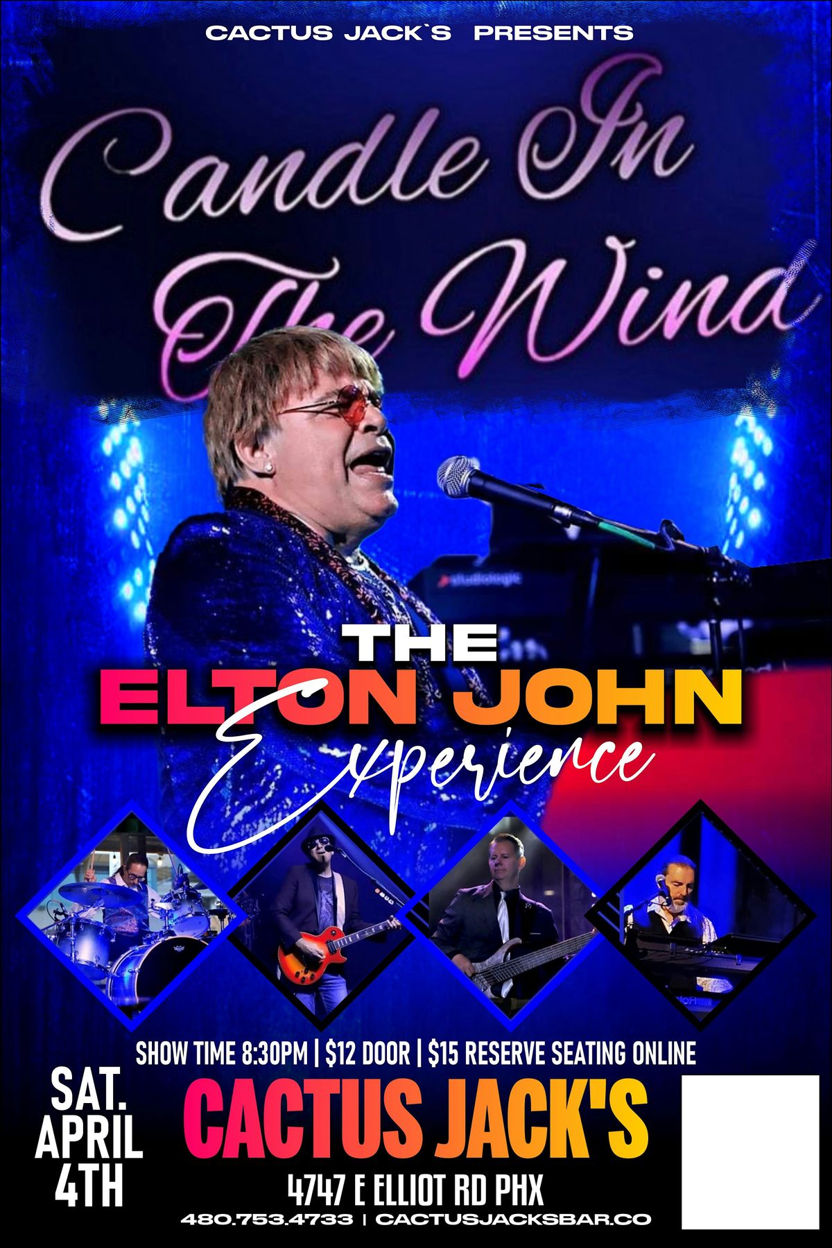Arizona! Candle In The Wind’ The Elton John Experience @ CactusJacks Sat 4/4! Show Starts @ 8:30 Tix only $15 For more info text 6025598393