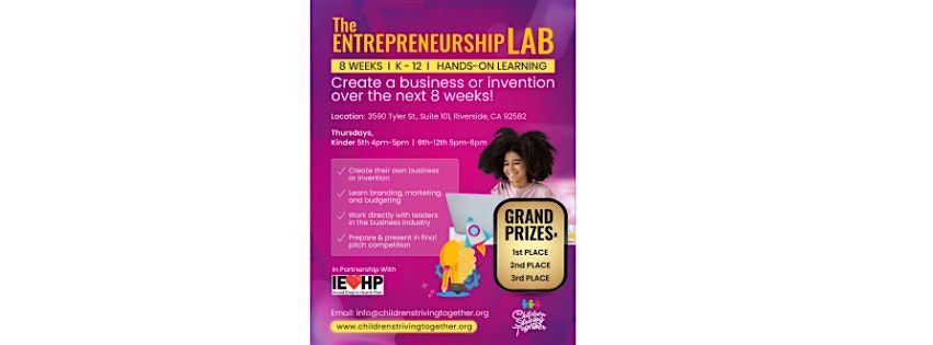 The Entrepreneurship Lab by Children Striving Together is an 8-week hands-on program designed to introduce youth to the world of entrepreneurship, leadership, and financial literacy. Through engaging workshops, real-world activities, and mentorship, students will learn how to take an idea and turn it into a business, building confidence, creativity, and critical life skills along the way.