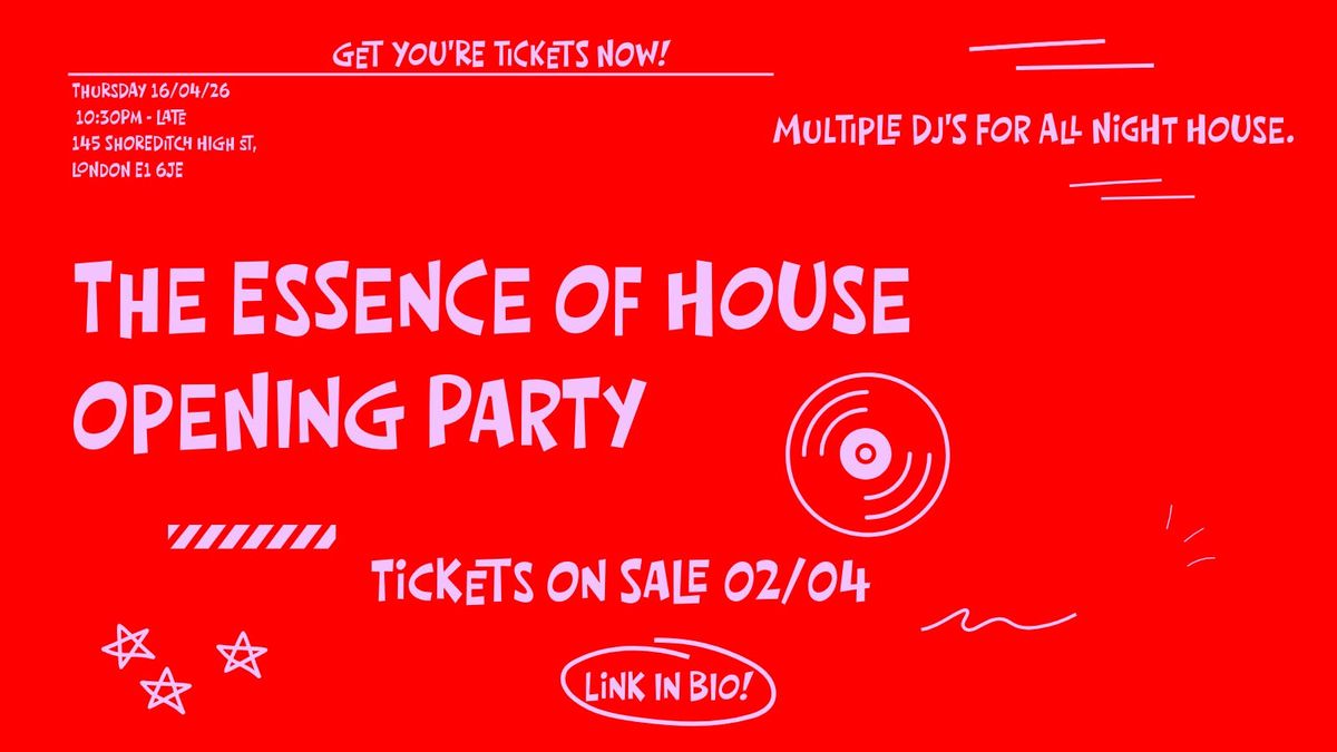 Step into the sound of summer with The Essence Of House: Summer Opening Party — the very first event from Essence, landing in the heart of Shoreditch. Bringing together a lineup of talented DJs, we’re setting the tone with nothing but pure house music, inspired by the classics that defined the culture.