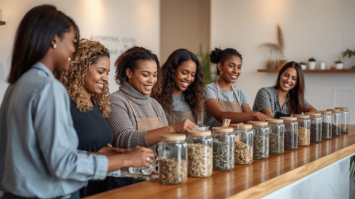 Tea & Intentions is a small-group, hands-on experience designed to help you slow down and create a simple ritual you’ll actually use. You’ll build a 4oz custom loose-leaf tea blend from a curated tea bar, learn the basics of what the herbs support, and complete a Wabi Sabi–inspired intention practice to help you reset without chasing perfection.