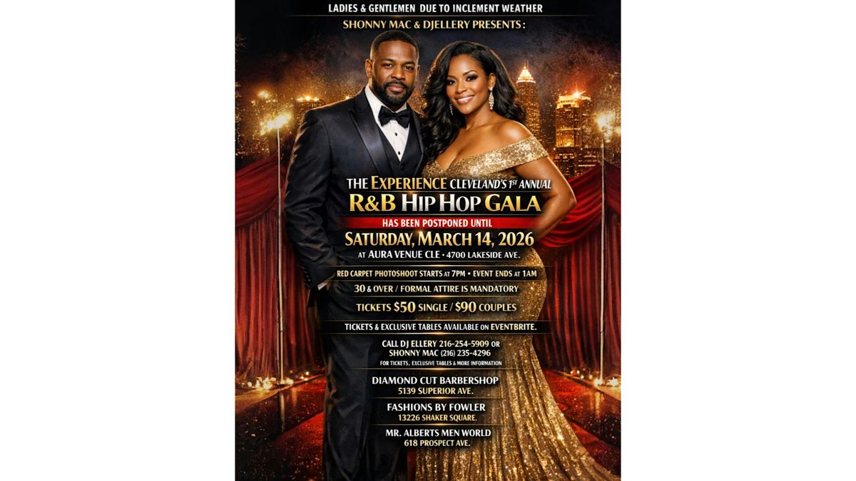 THE EXPERIENCE CLEVELAND'S 1ST ANNUAL R&B / HIP HOP GALA FORMAL ATTIRE EVENT. SATURDAY, MARCH 14, 2026 AT AURA VENUE CLE LOCATED AT 4700 LAKESIDE AVE 7PM-1AM.