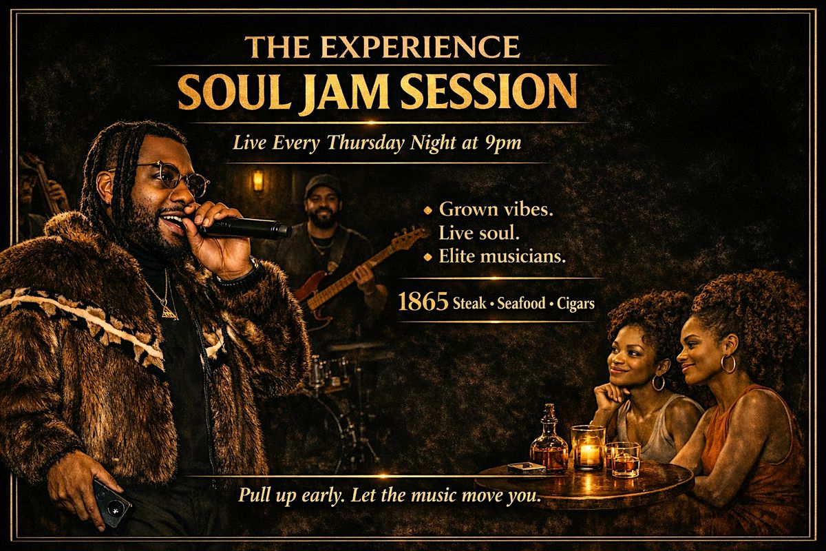 The Experience Soul Jam Session Live band, open jam vibes & grown energy every Thursday at 1865 DC. Music starts at 9PM. Musicians welcome