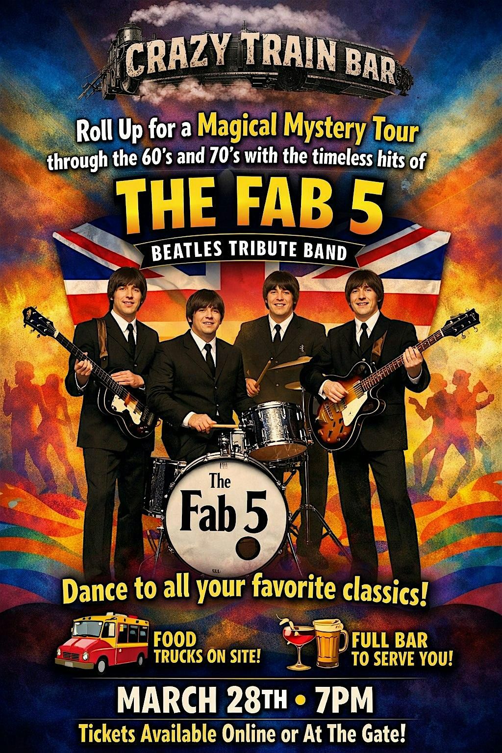 Roll Up for a Magical Mystery Tour through the 60's and 70s with the timeless hits of THE FAB 5. Dance to all your favorite classics.