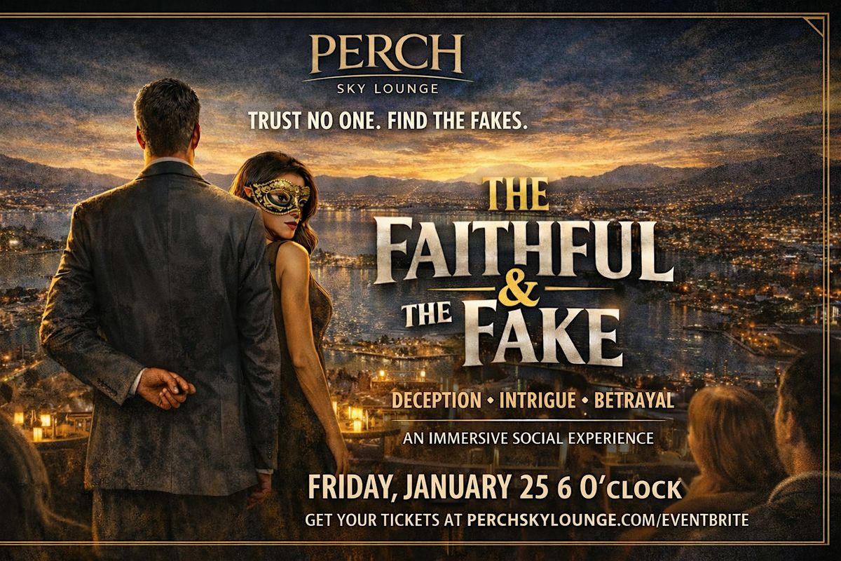 The Faithful & The Fake is an immersive social game hosted at Perch Sky Lounge, where deception, strategy, and observation collide. Set high above the city, guests are invited to mingle, form alliances, and uncover hidden roles as the night unfolds.