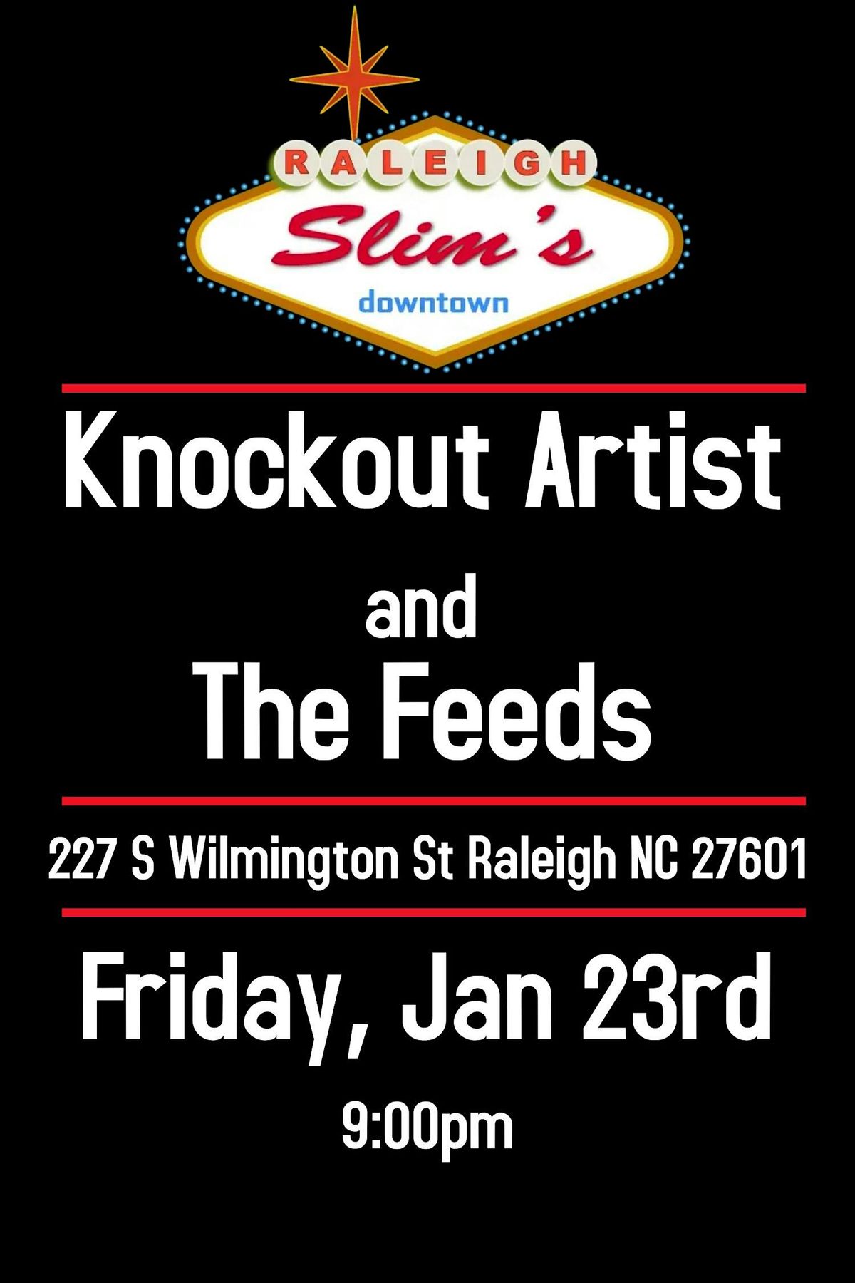 The Feeds and Knockout Artists are back at Slim’s on January 23rd at 9pm! The Feeds are a local Raleigh rock n roll band with melodic riffs. Chapel Hill’s Knockout Artist features Sim Berkley, Rock Forbes, Danny Hooley, Matt Neal and Phil Venable.