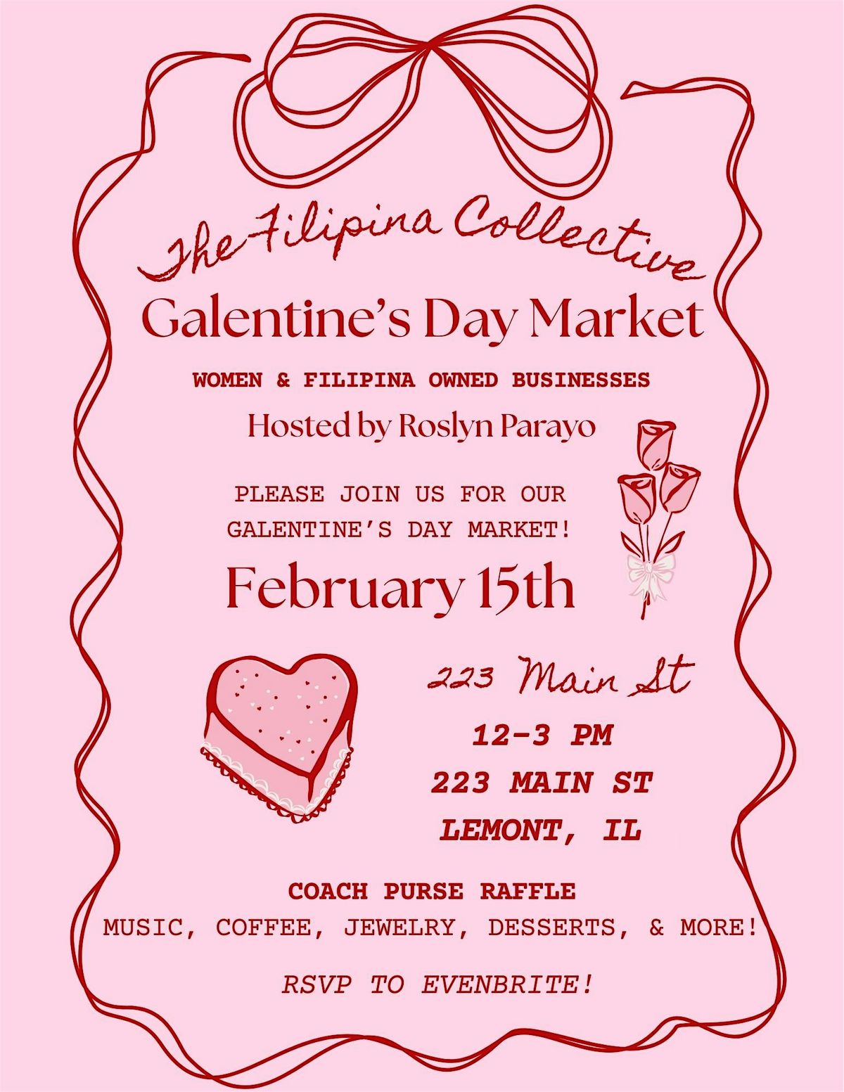 Gather your besties and join us for The Filipina Collective: Galentine's Day Market! This in-person event is all about celebrating friendship and women supporting women. Can't wait to see you!