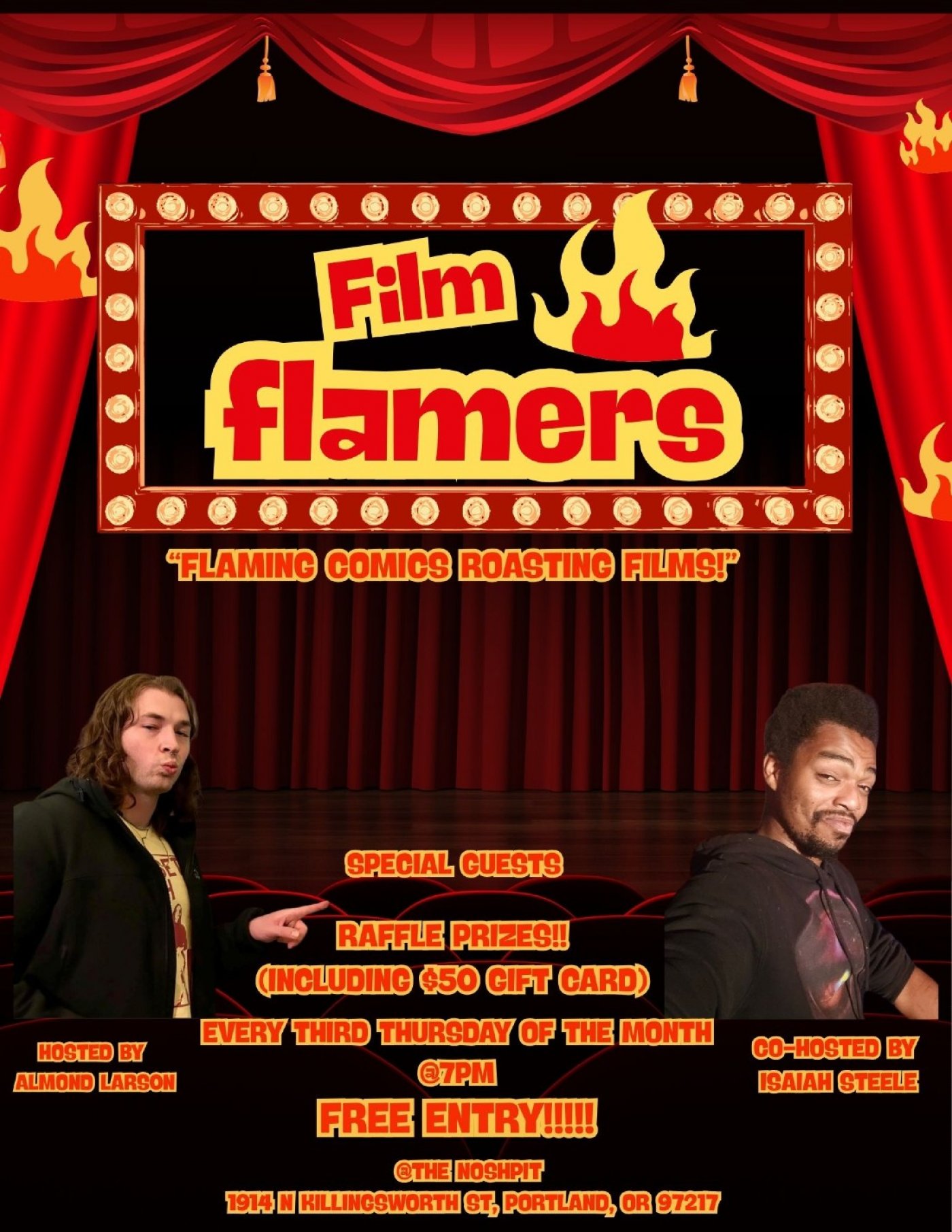 The show is free, and we run raffles throughout the night (including a $50 gift card).
