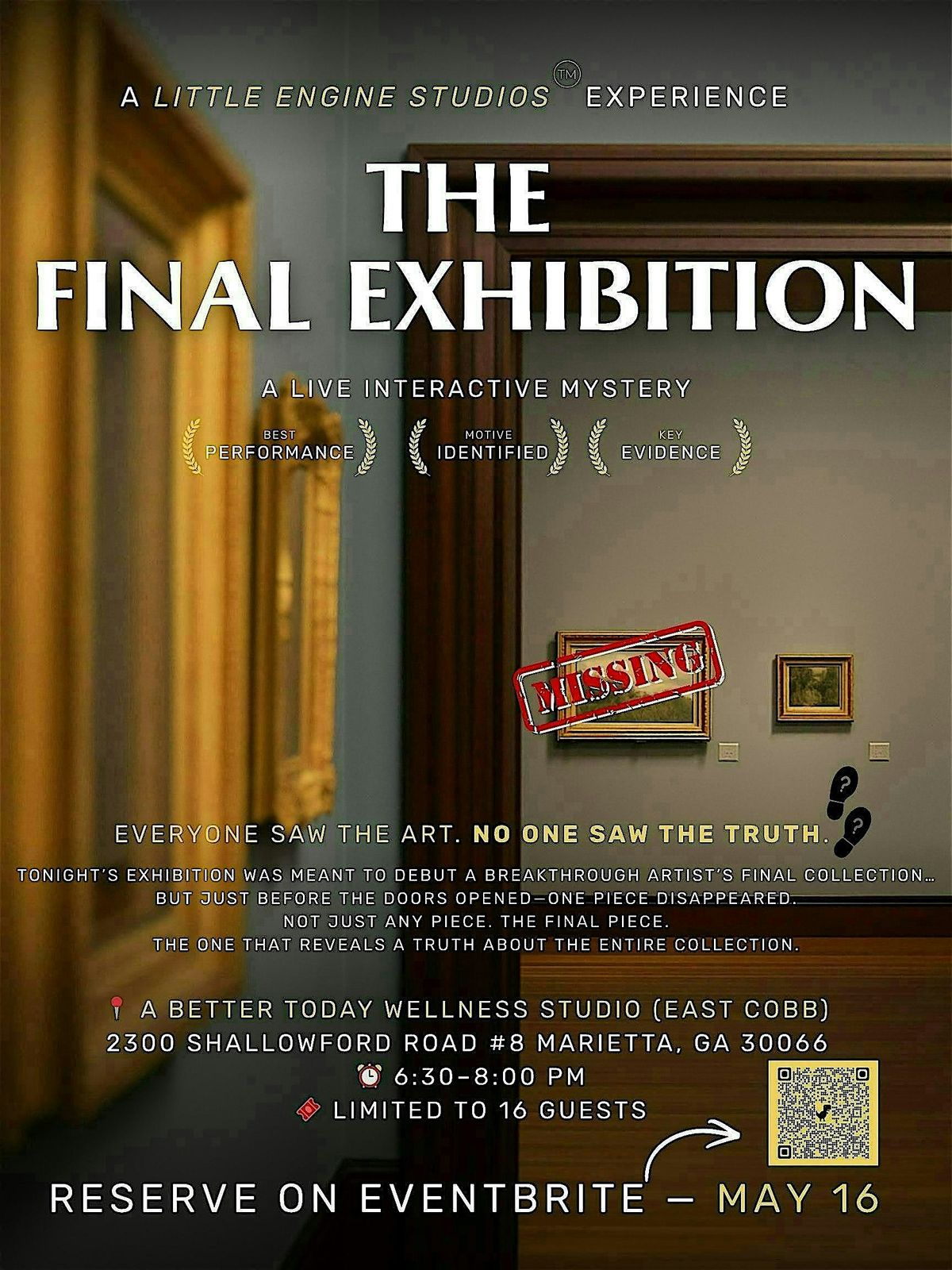 The Final Exhibition is a 90-minute interactive mystery experience hosted by Little Engine Studios.