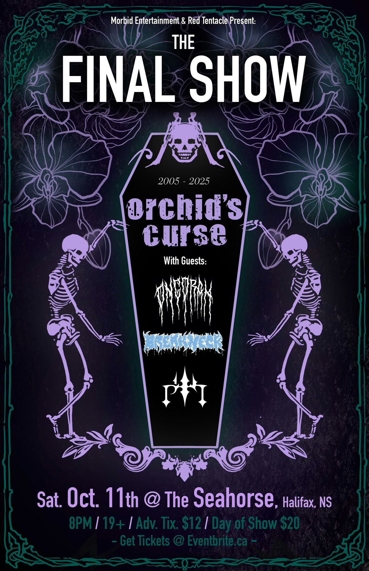 The Final Show. Goodbye is when the casket closes and the lid will be shut on local metal legends, Orchid's Curse. One last show with special guests Ongorah, Breakneck & Pith. Don't miss your last chance to be a workhorse in the pit! Please join us in the celebration of life for Orchid's Curse. Is this what you have chosen, or has it been chosen for you?