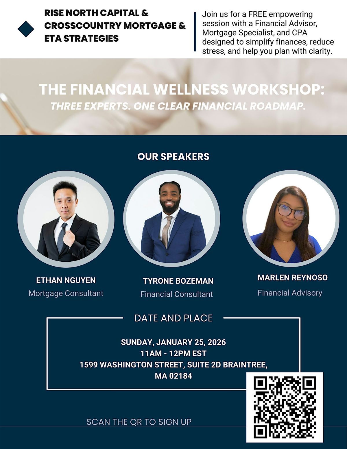 Join us for a FREE empowering session with a Financial Advisor, Mortgage Specialist, and CPA designed to simplify finances, reduce stress, and help you plan with clarity.