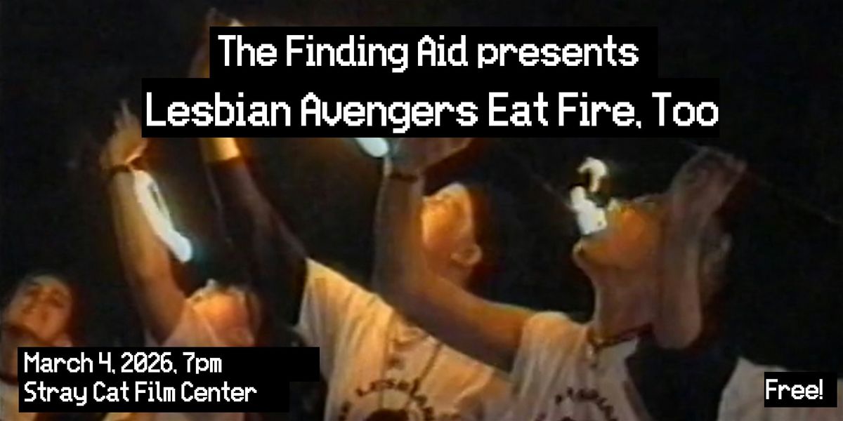 “The fire will not consume us. We take it and make it our own.” In October 1992, the direct action collective The Lesbian Avengers performed their first fire-eating to honor Hattie Mae Cohens and Brian Mock, who were killed in a homophobic fire-bombing attack. Over the years, they would stage protests through New York City, establish the NYC Dyke March, and form chapters throughout the country. The Finding Aid presents Lesbian Avengers Eat Fire, Too which documents the first year of The Avengers’ activity. March 4, 2026 at 7pm.