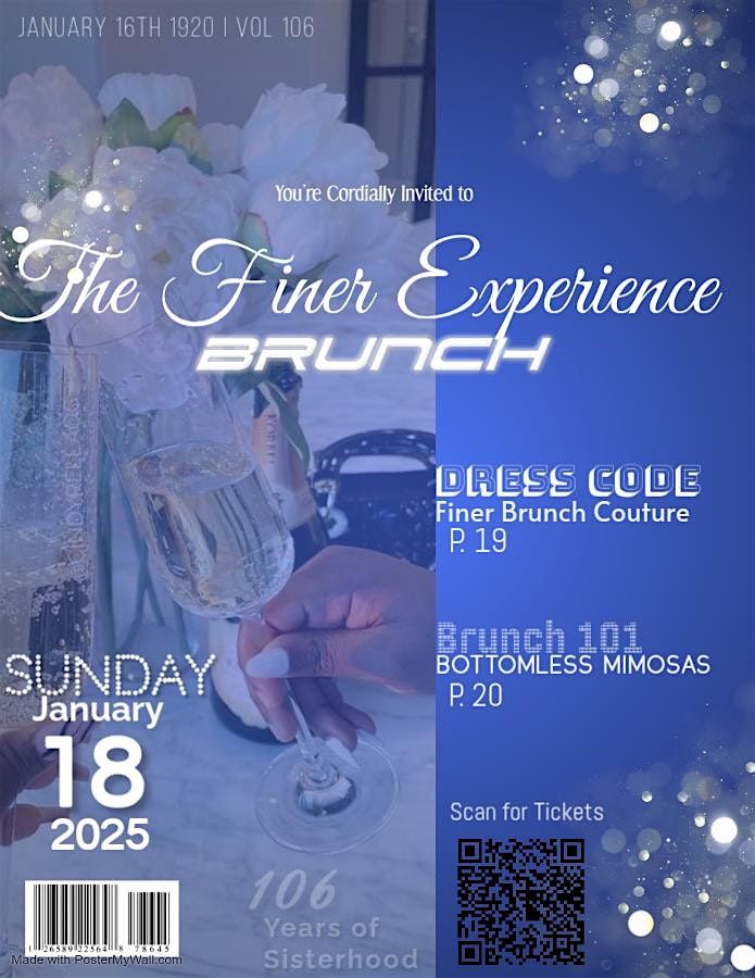 Welcome to The Finer Brunch Experience .Join us on January 18, 2026 for a delightful afternoon filled with delicious food, tasty sips and great company. Celebrate 106 years of sisterhood, the finer way! We can't wait to see you there!